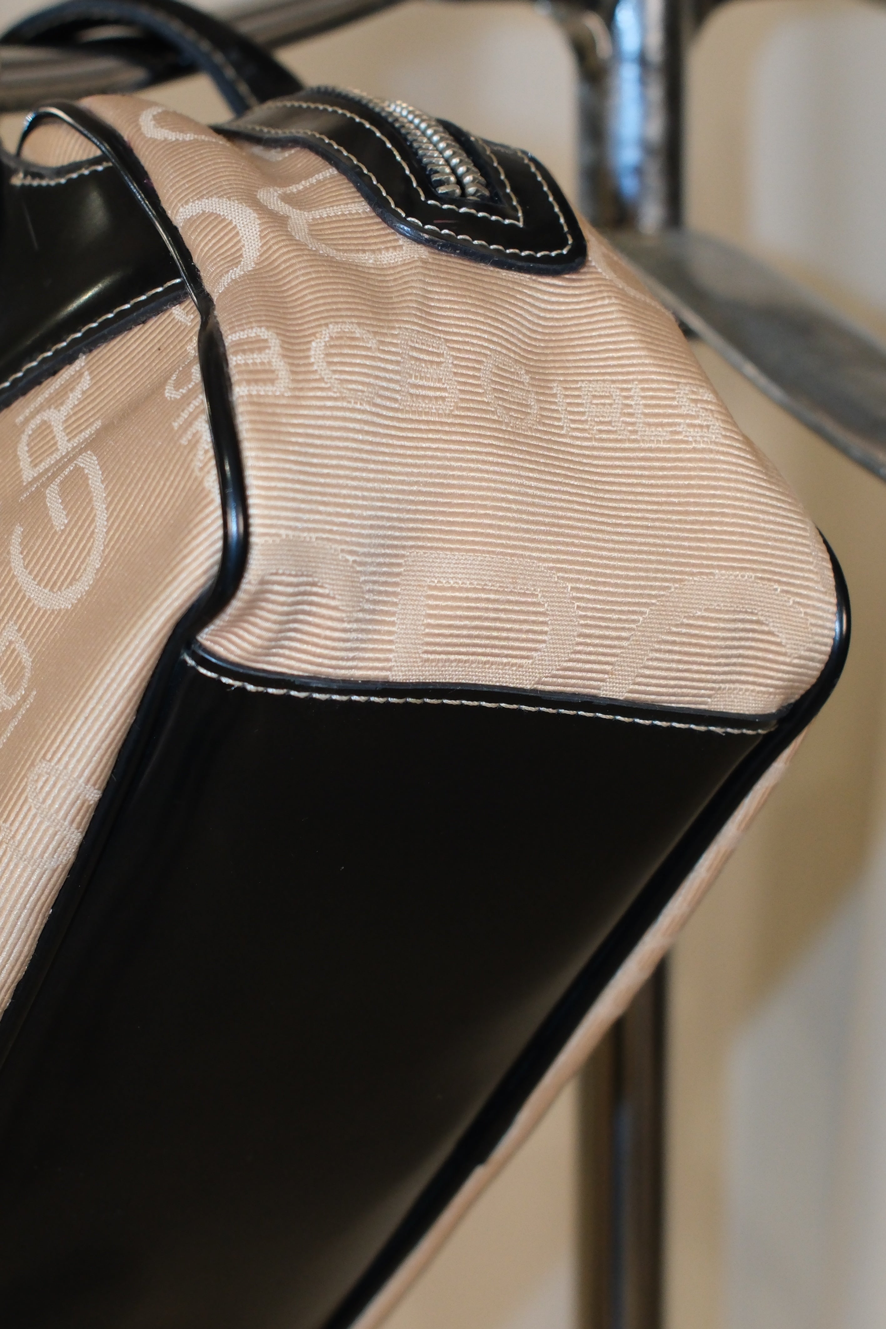 BCBG MAXIMIZER MONOGRAM CANVAS BOWLING BAG
