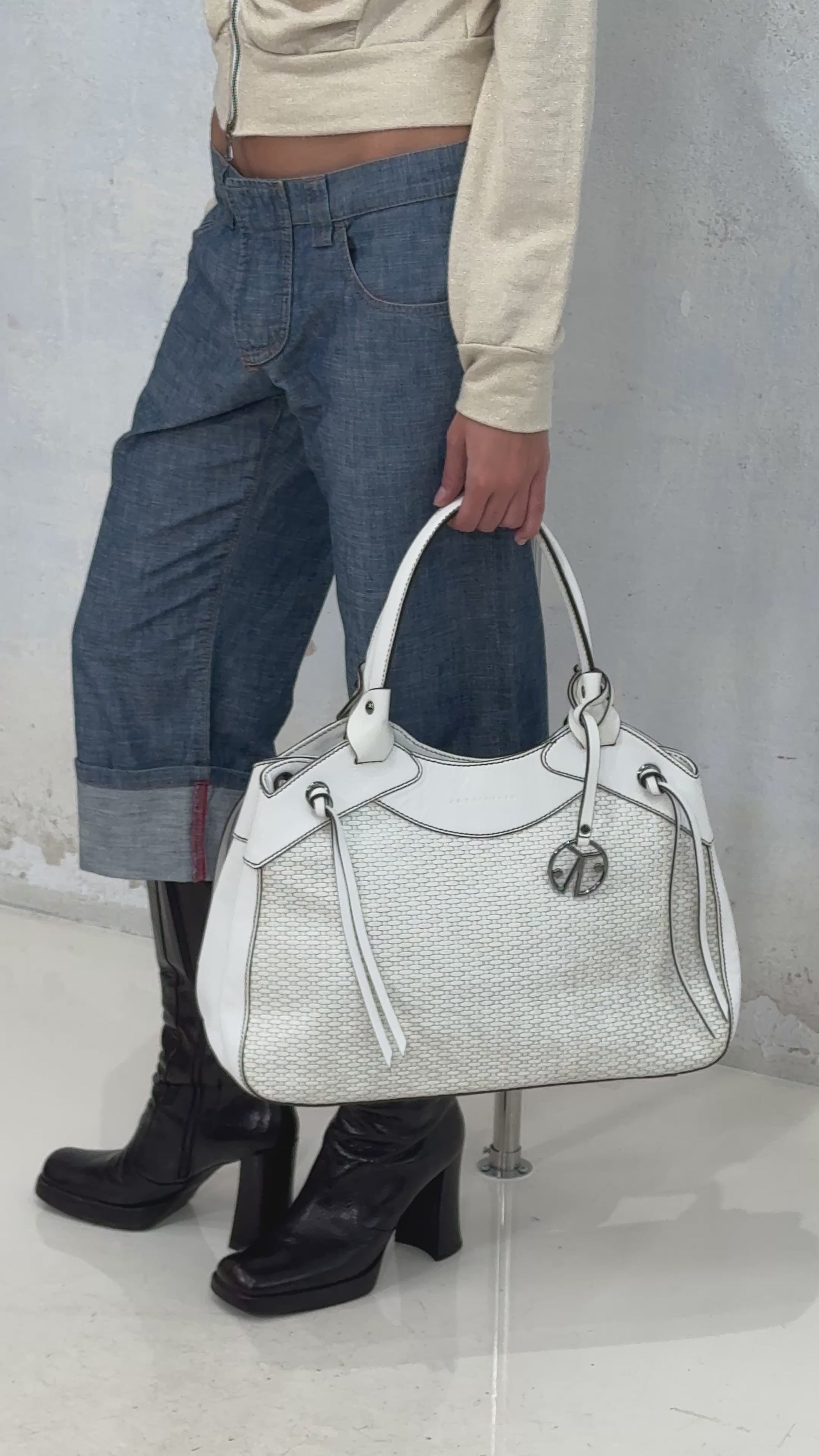 COCCINELLE WOVEN WHITE LEATHER BAG