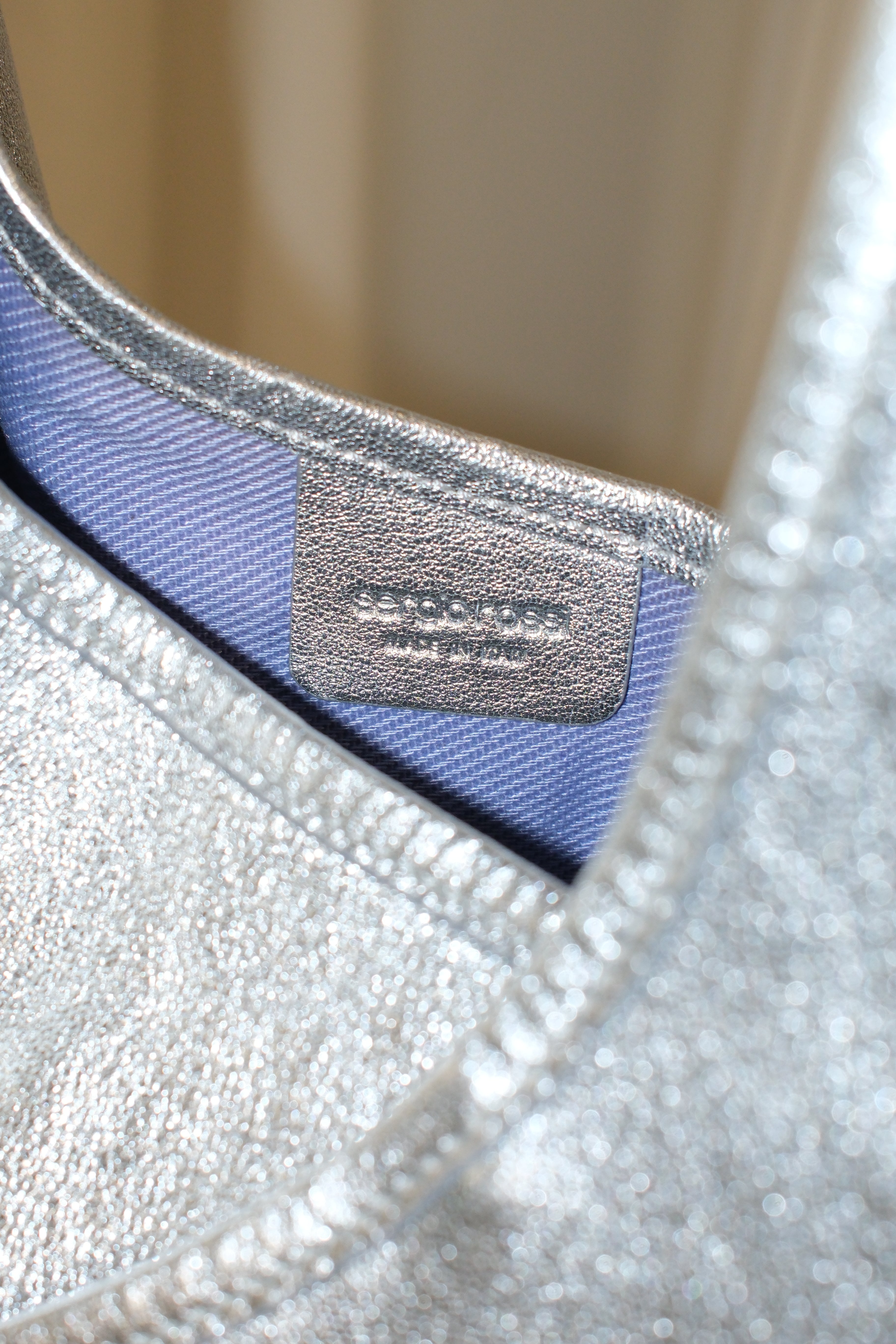 Sergio Rossi Silver Asymmetric Leather Shoulder Bag