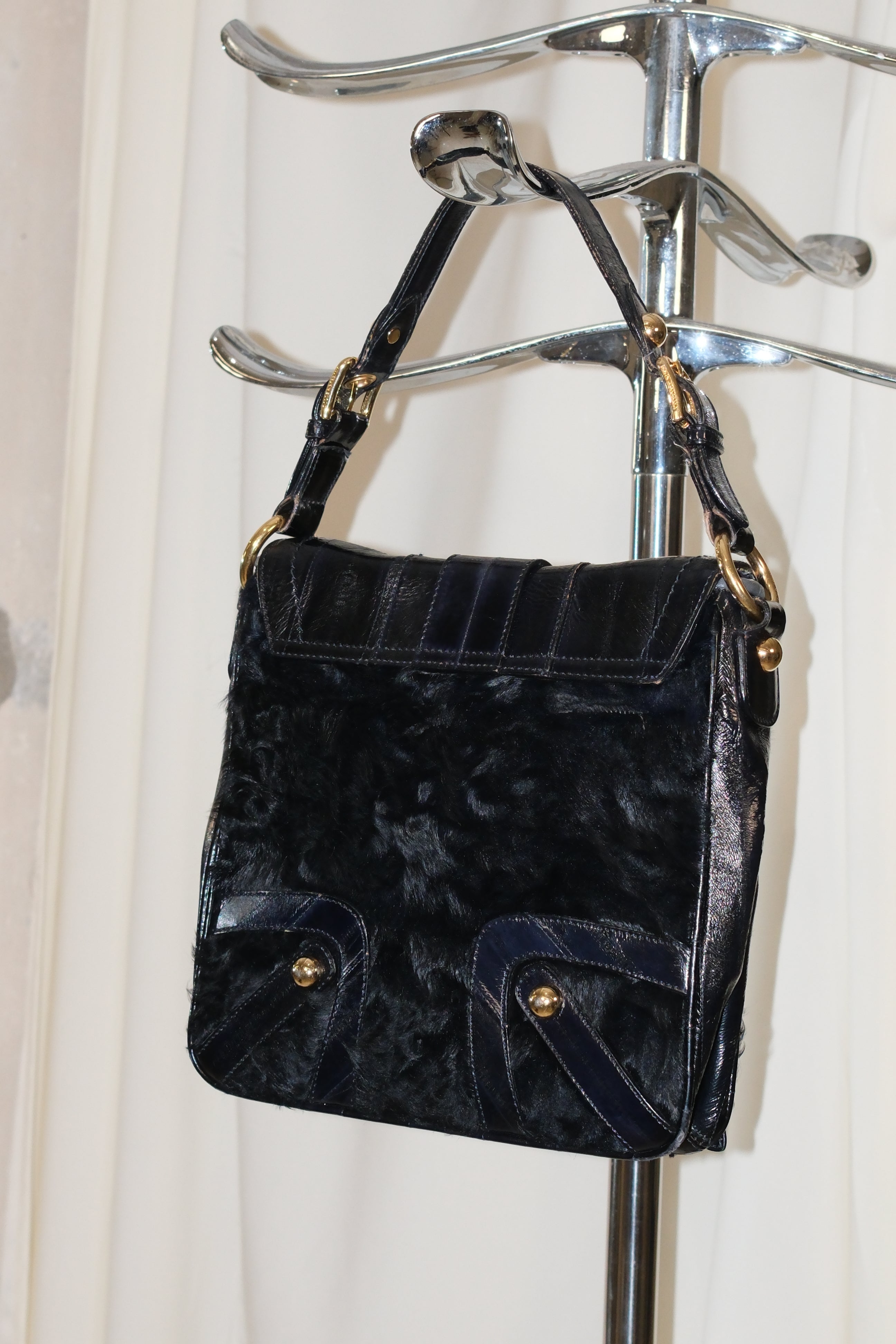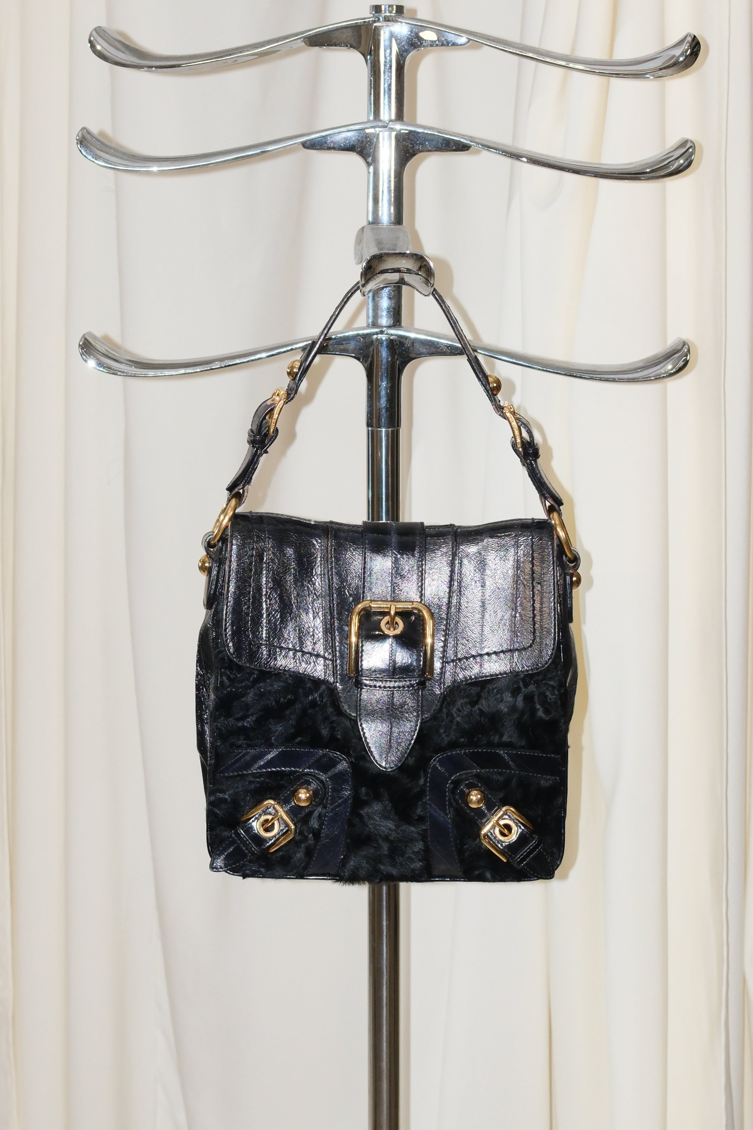2004 DOLCE GABBANA LEATHER AND FUR SHOULDER BAG