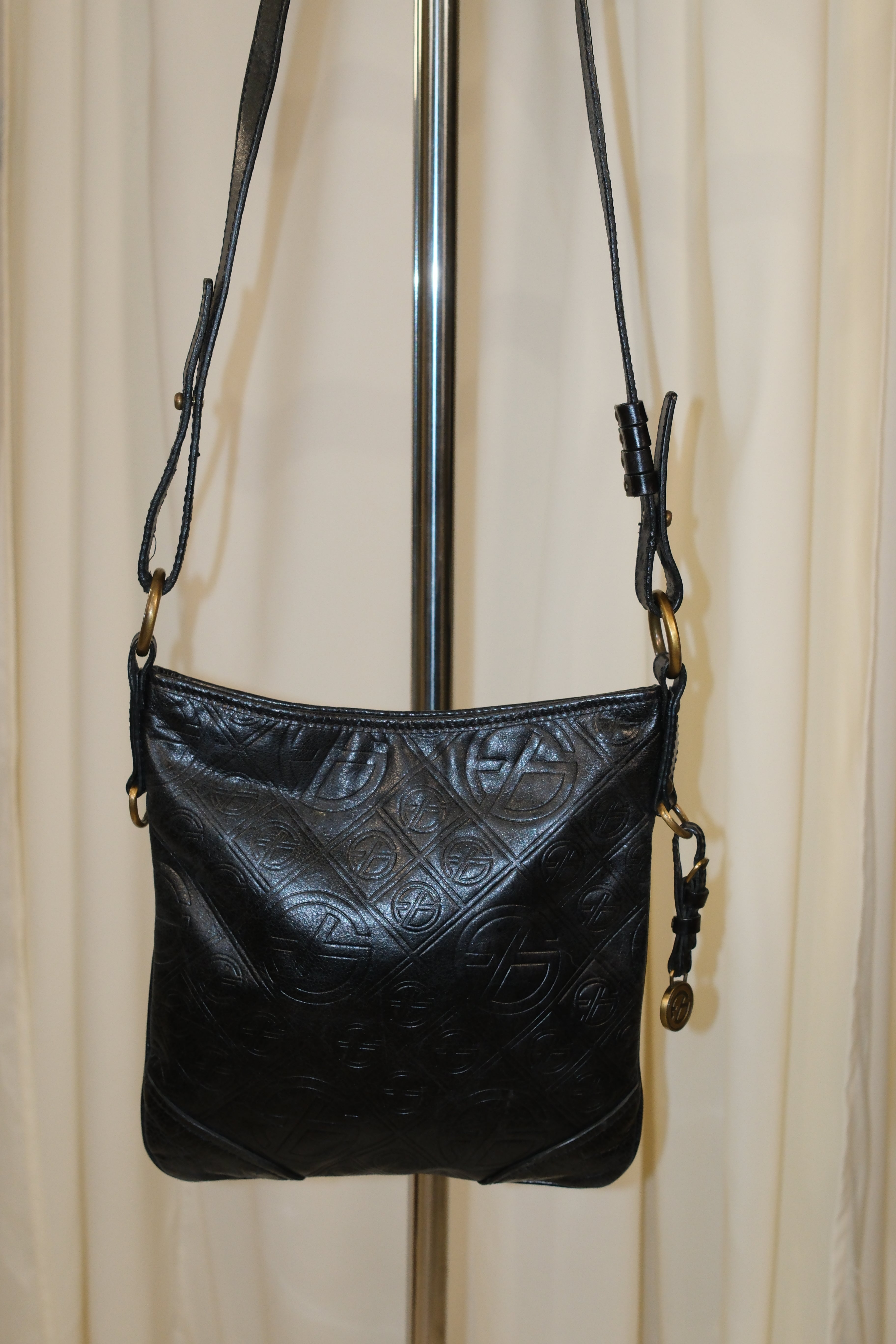 FRANCESCO BIASIA CROSSBODY BAG IN BLACK MONOGRAM LEATHER