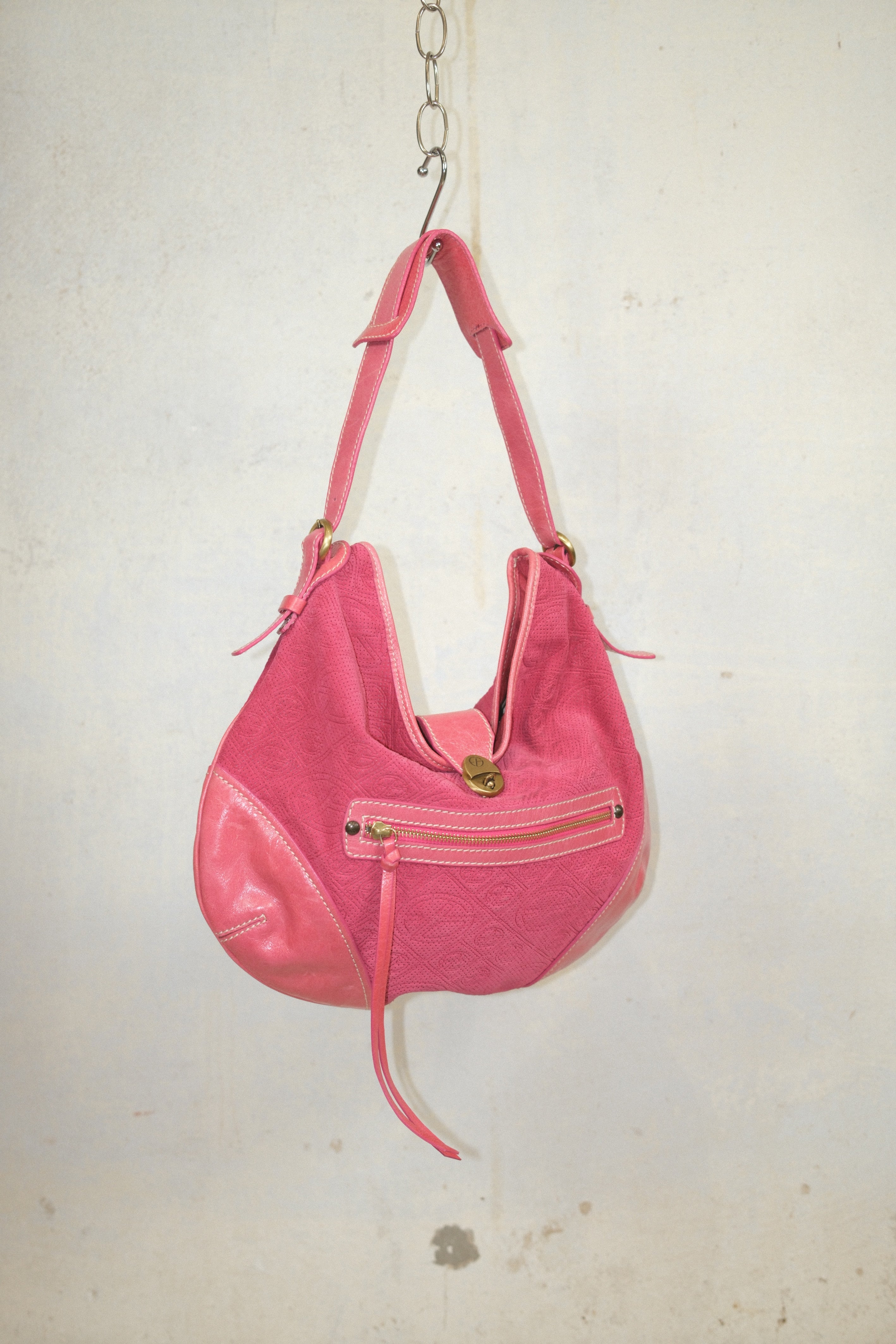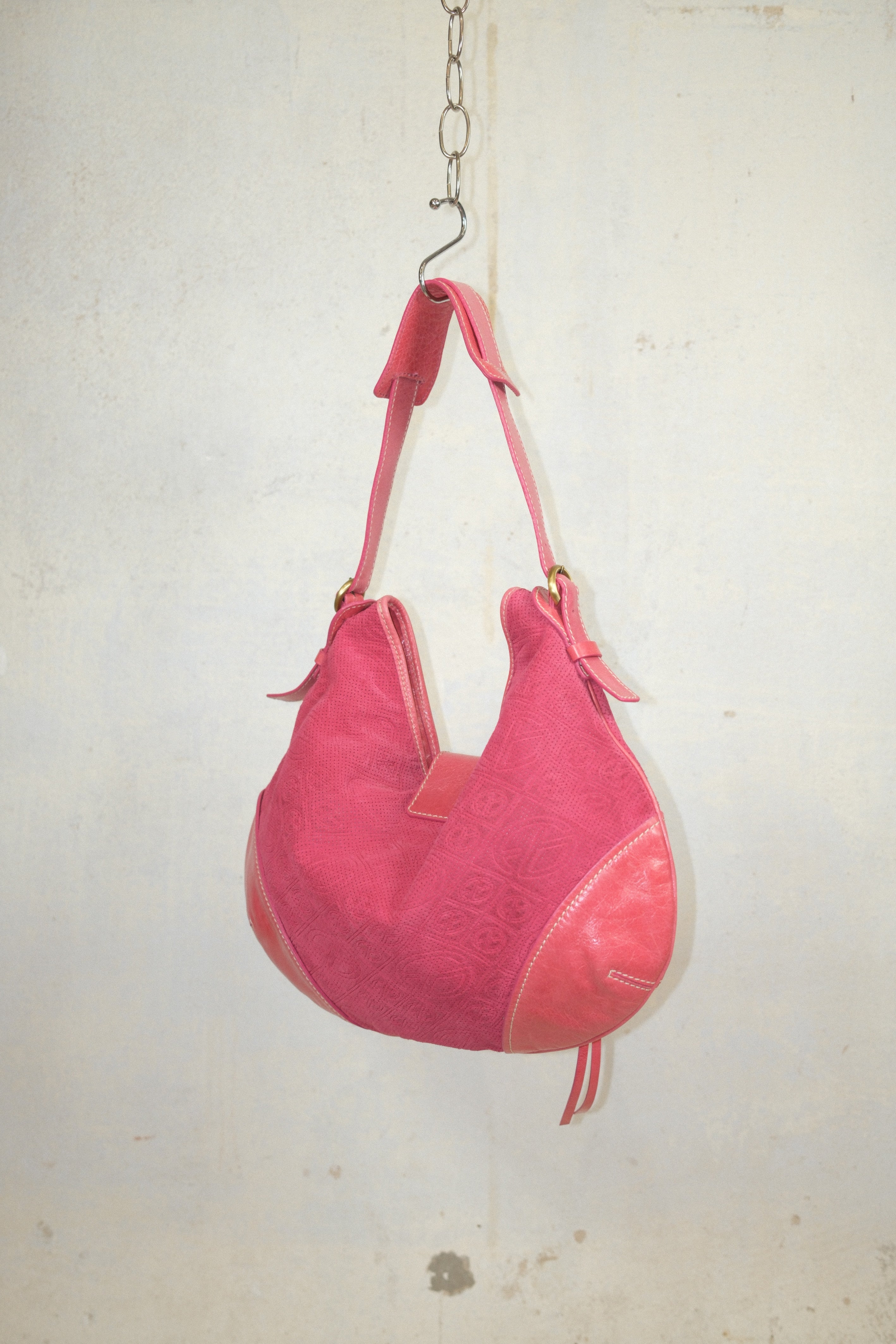 FRANCESCO BIASIA HOT PINK LEATHER AND SUEDE BAG