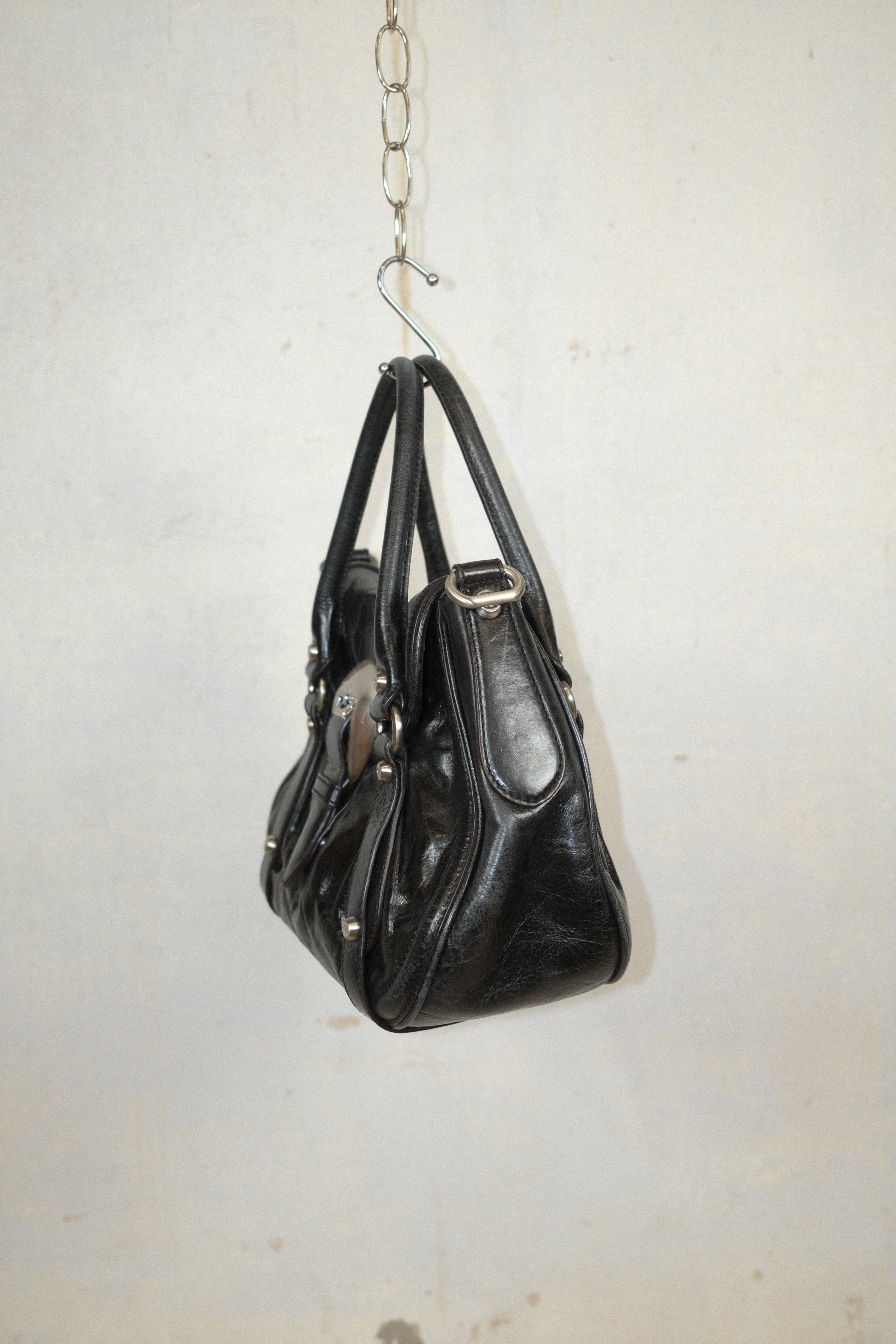 FRANCESCO BIASIA LEATHER HANDBAG WITH WESTERN STYLE BUCKLE CLOSURE