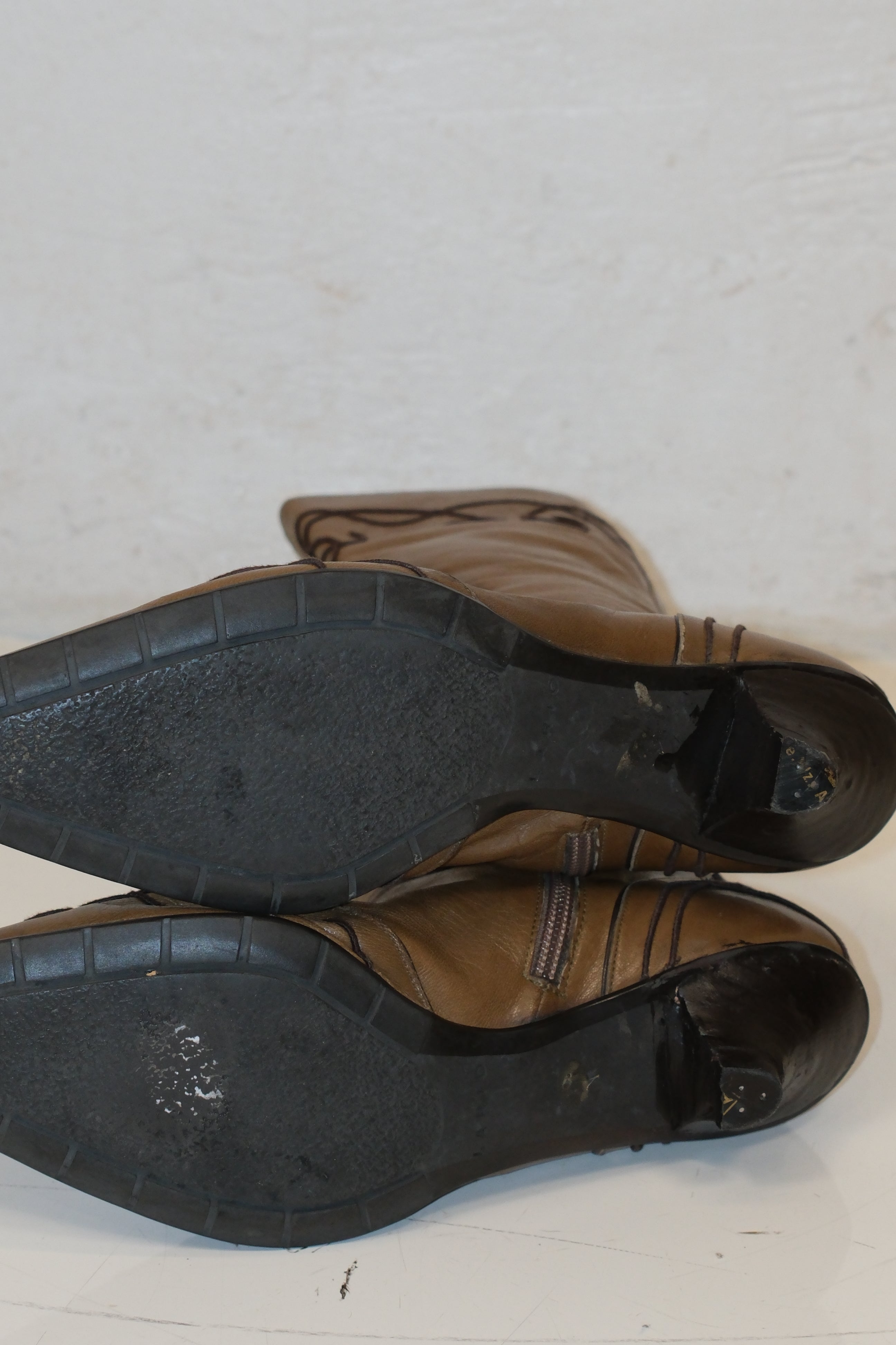 Italian Caramel Leather Ankle Kitten Heel Boots with Decorative Details Size 36.5