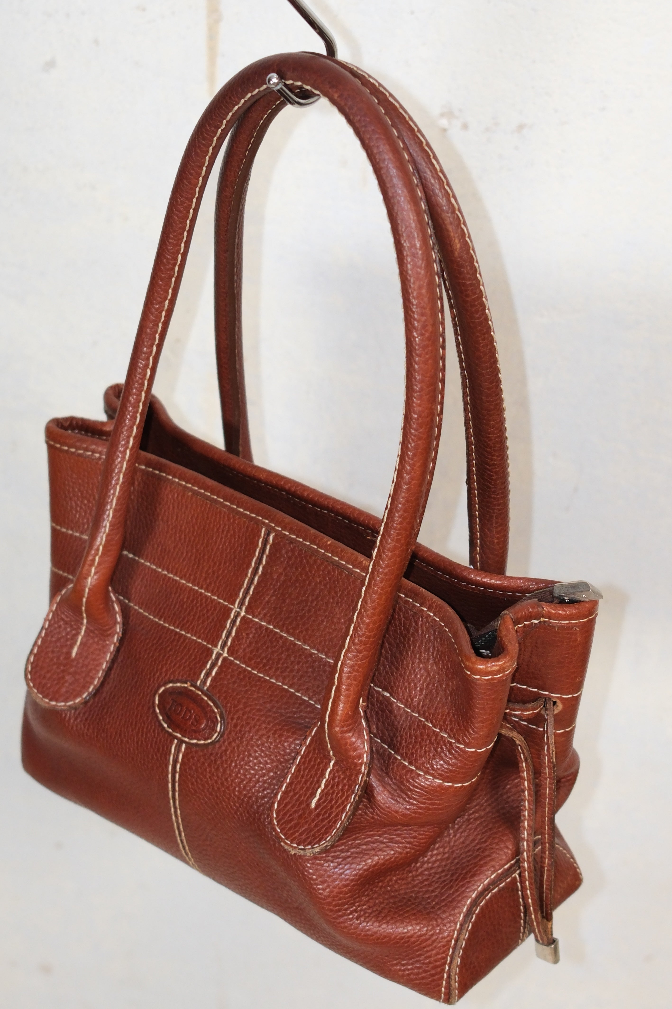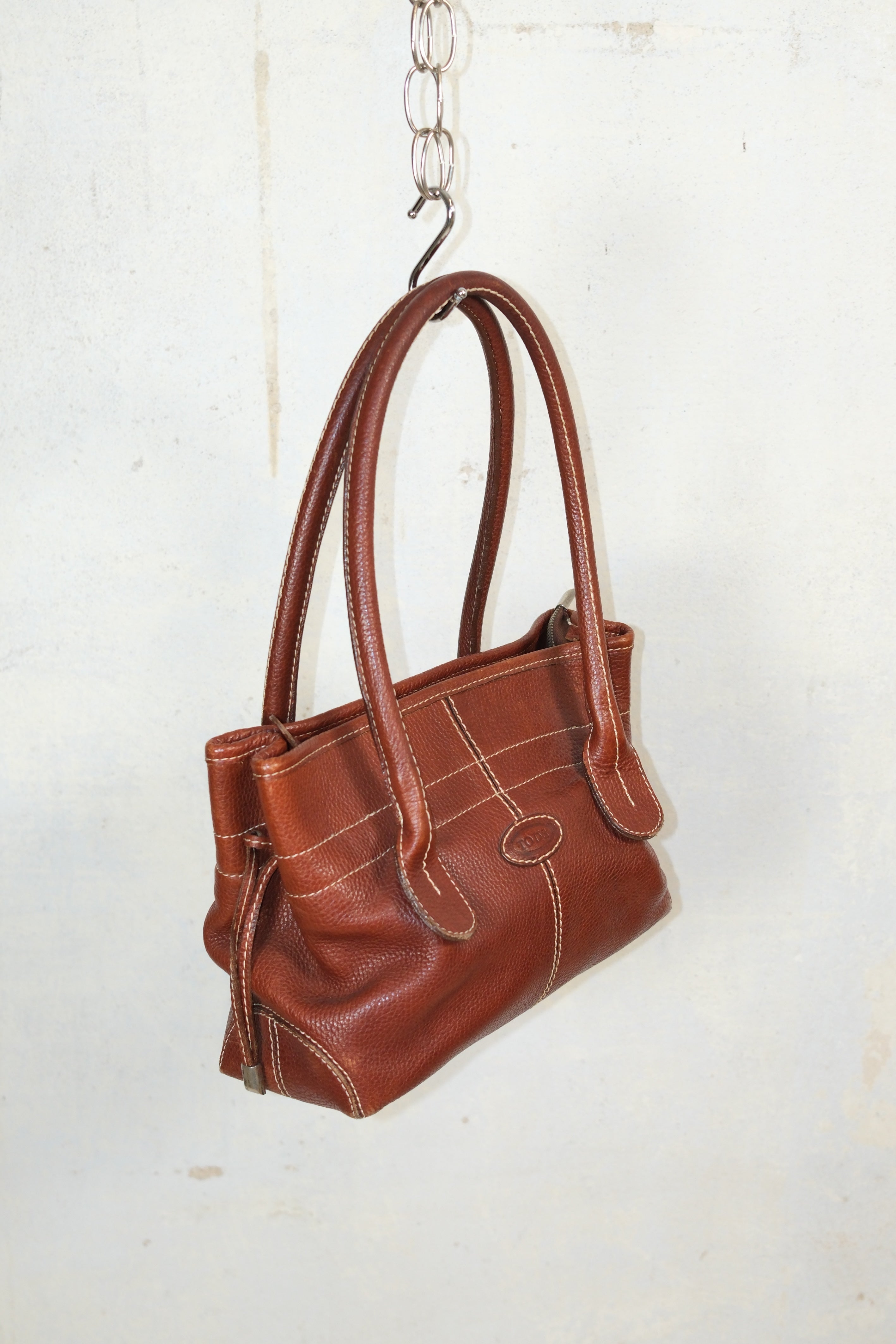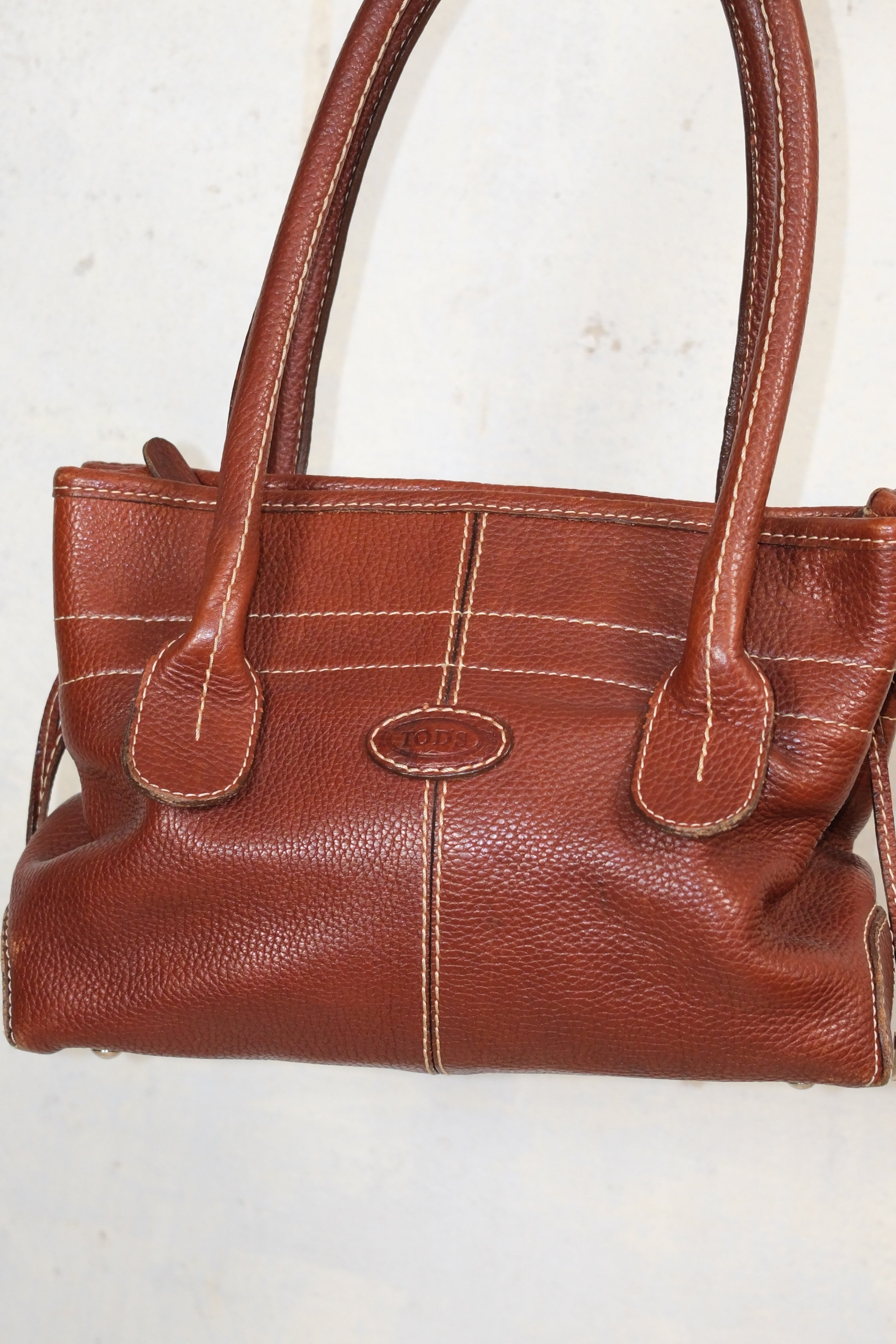 TOD’S DISTRESSED BROWN LEATHER SMALL TOTE