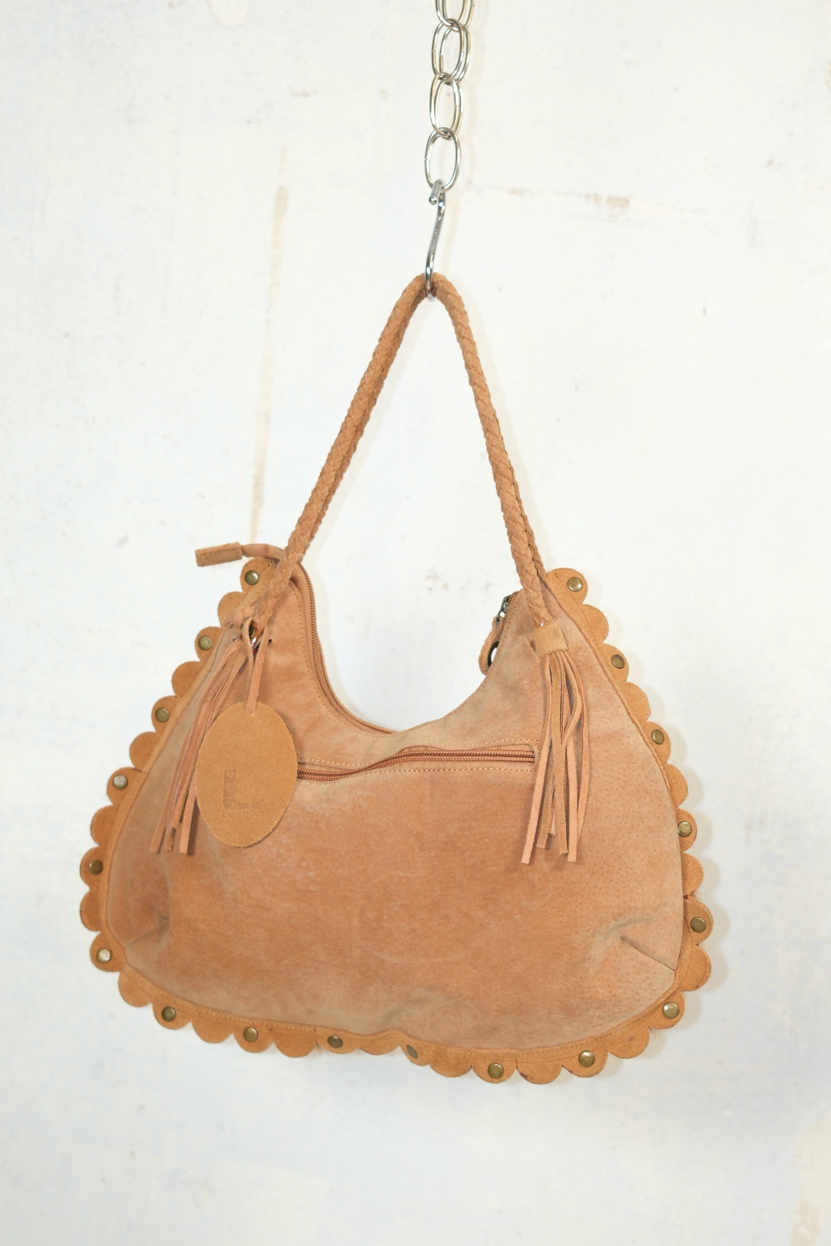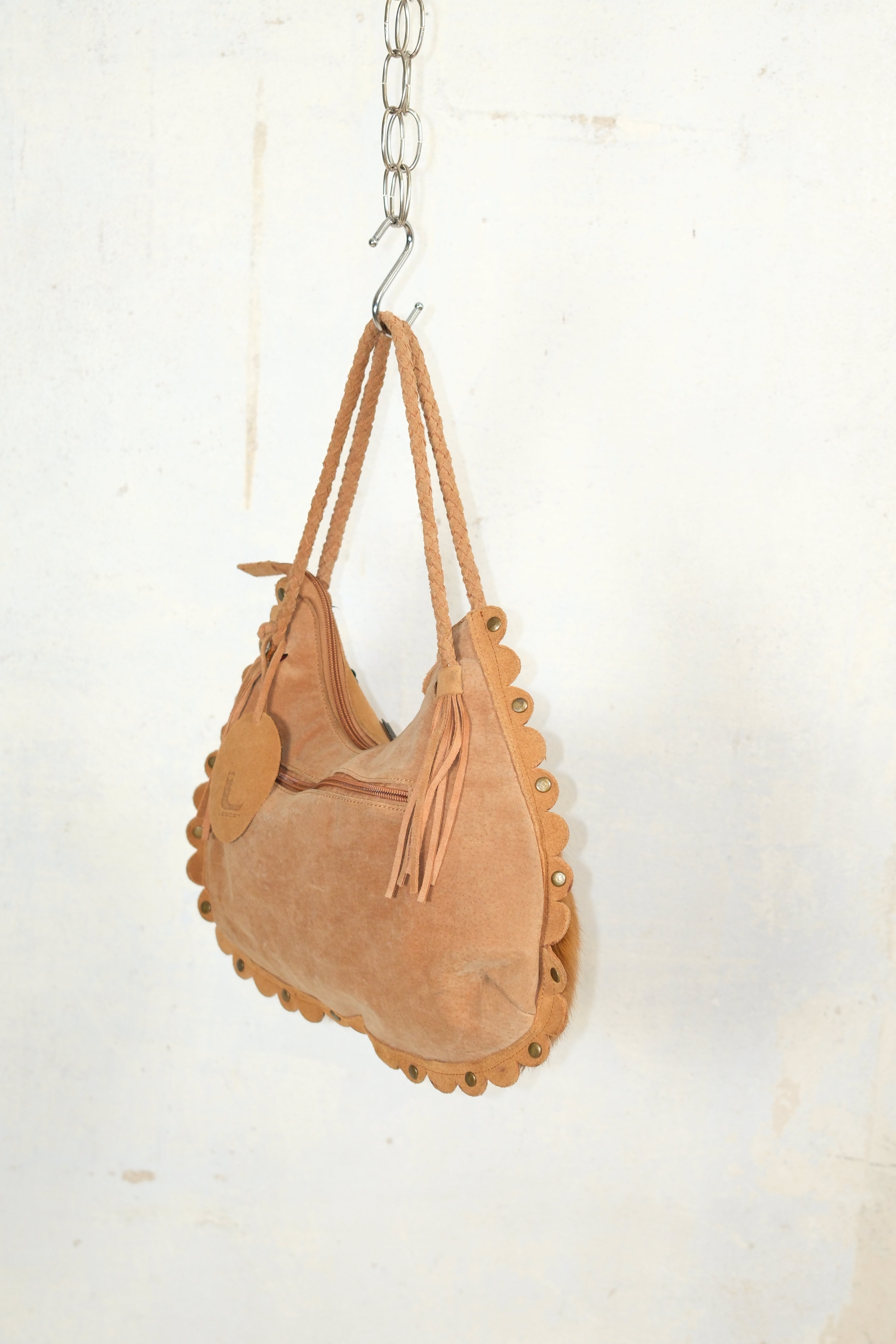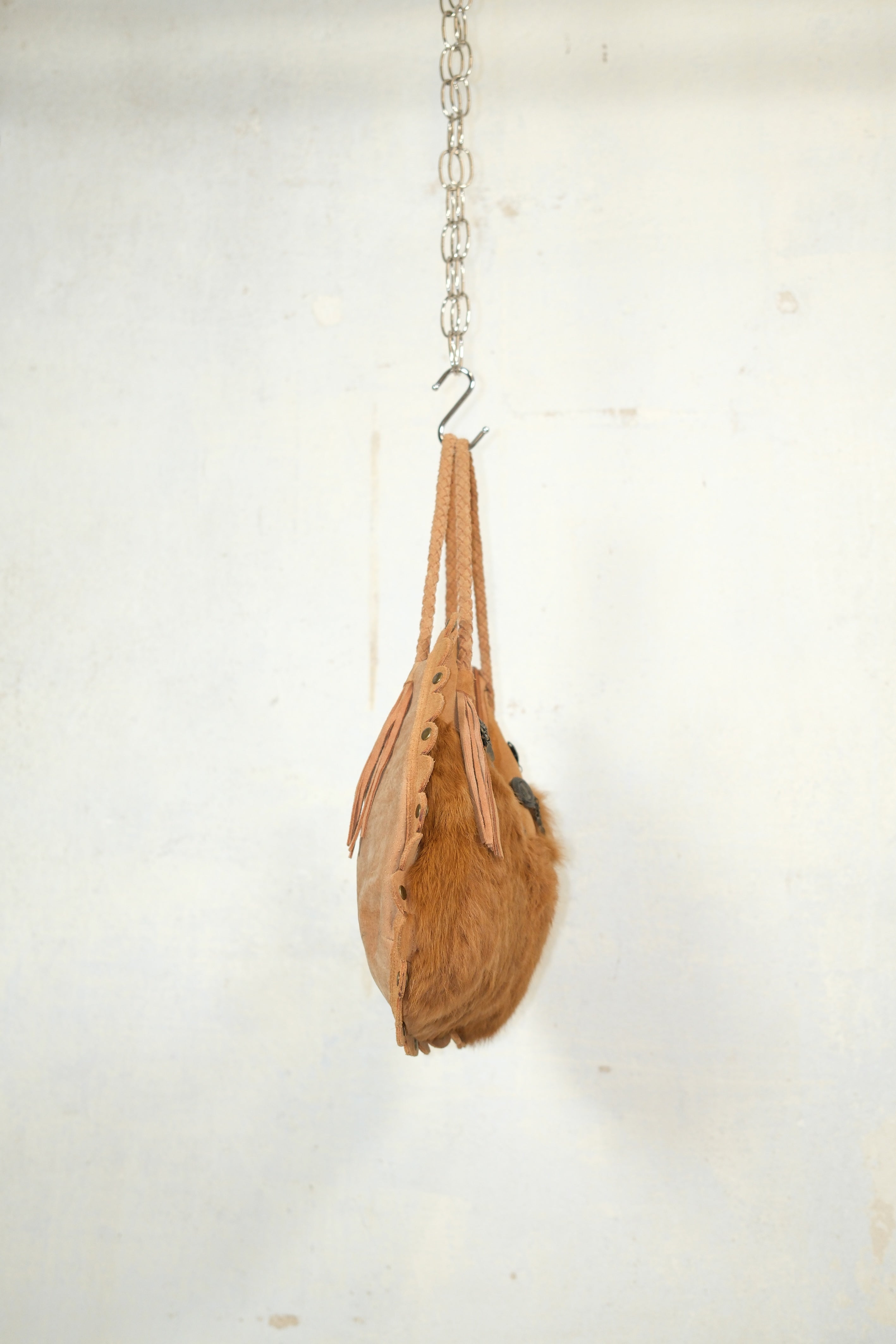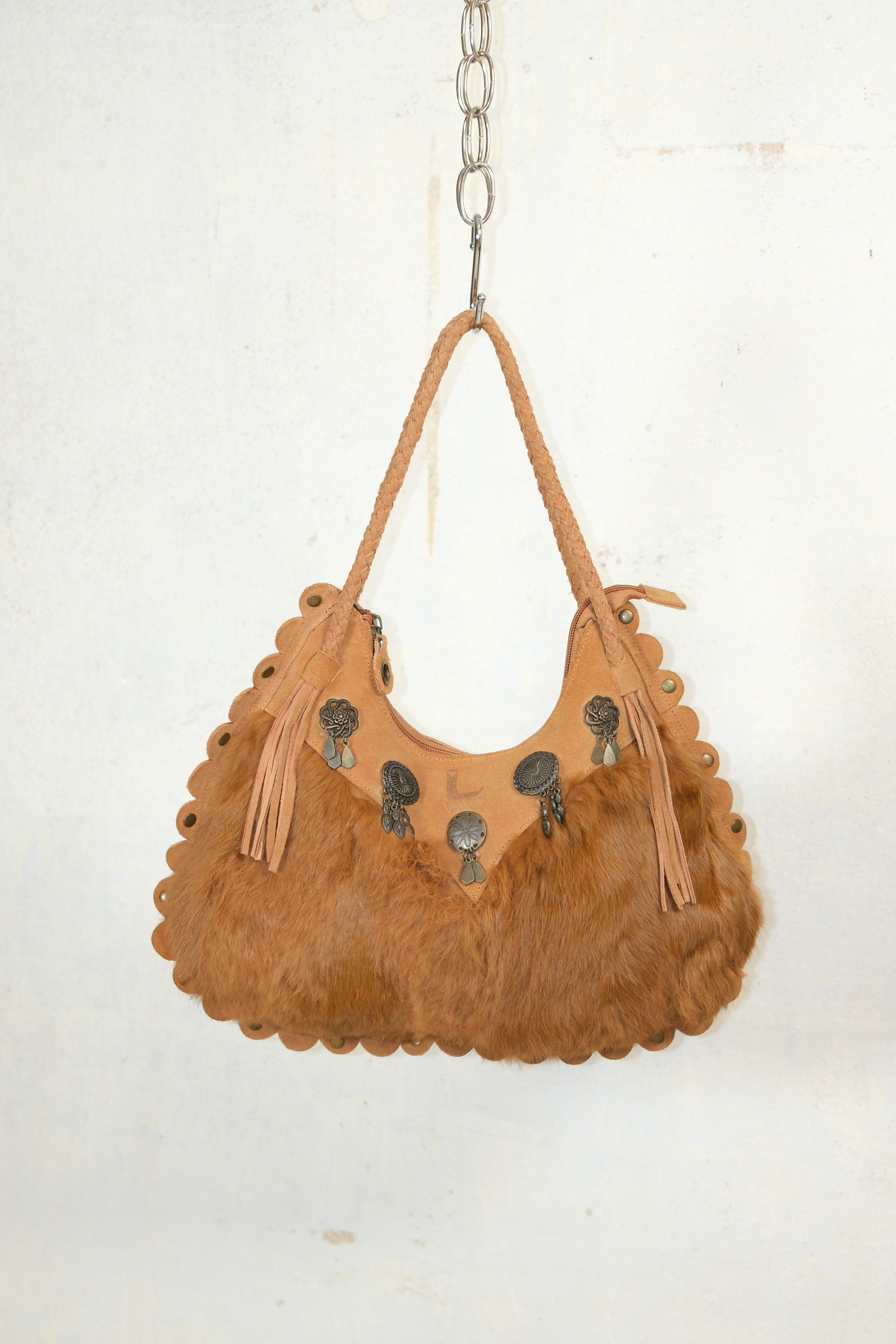 BOHO VINTAGE CAMEL BAG WITH RABBIT FUR